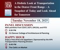 Join us at 5:30 for a panel discussion at CU Denver College of Architecture & Planning. Panelists from CDOT, DOTI, DRCOG, and RTD will provide a discussion.