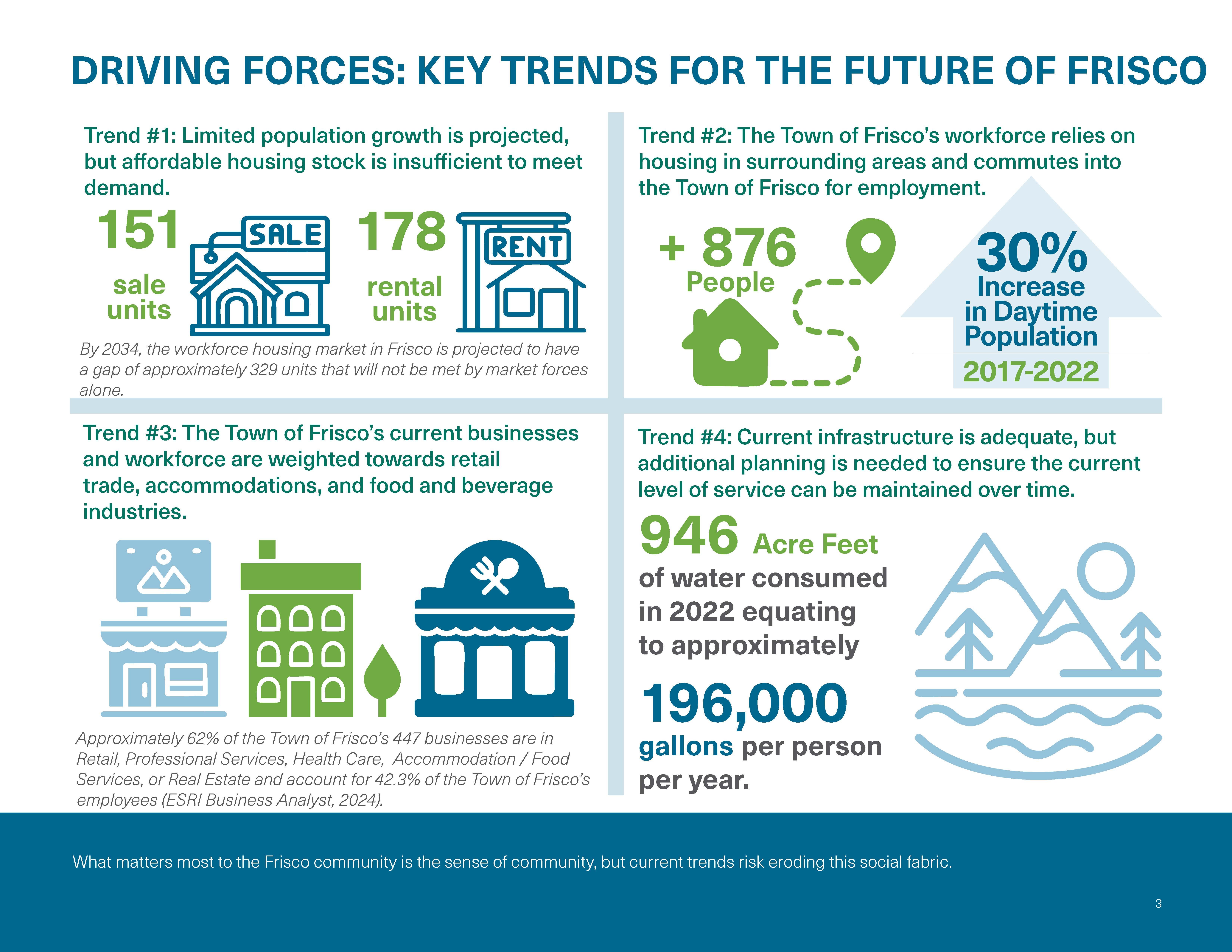 As Frisco looks ahead, the Comprehensive Plan stands as a testament to what is possible when a community comes together: a shared vision for a mountain town thriving in balance with its people, its environment, and its enduring sense of place.