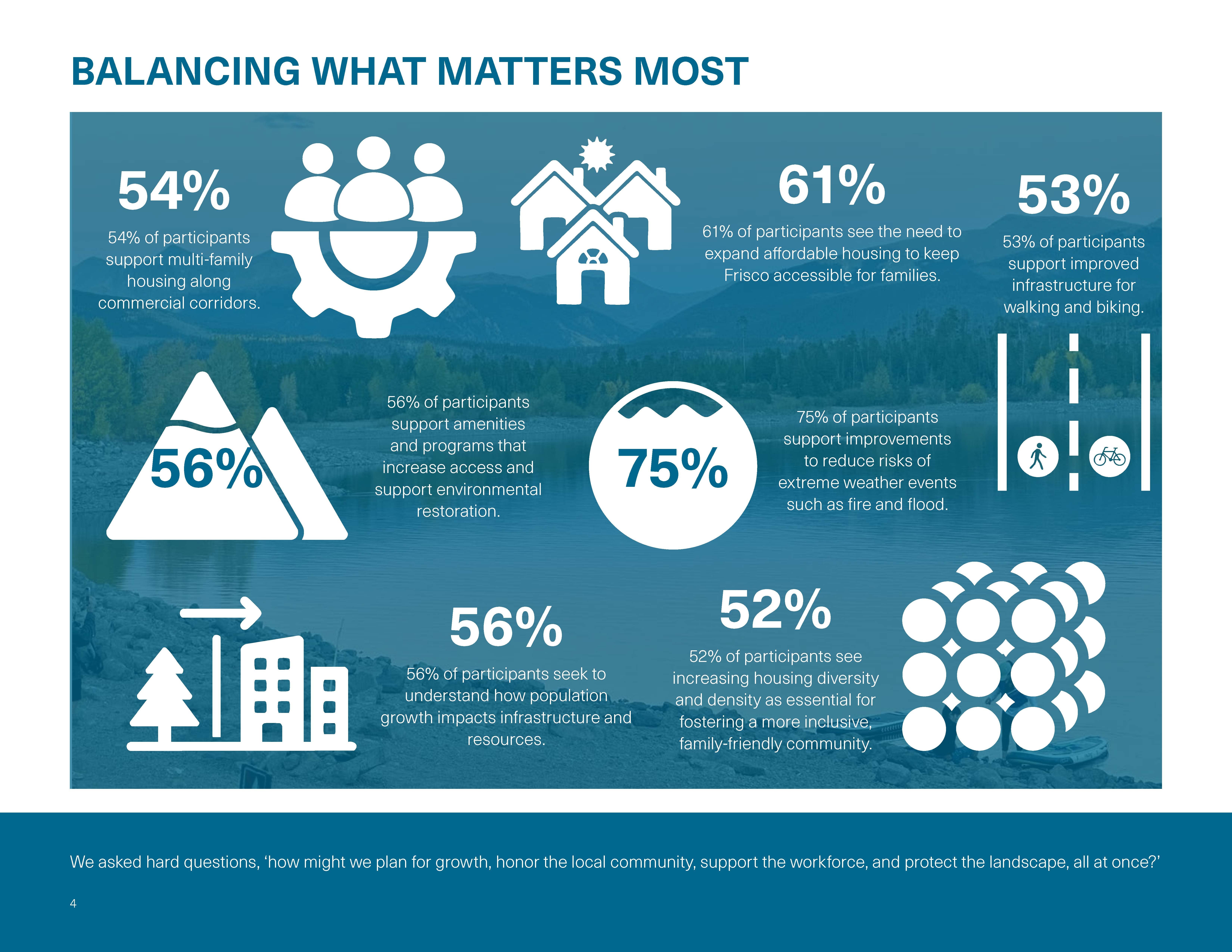 To navigate these challenges, the Town of Frisco partnered with Design Workshop to create the Frisco Comprehensive Plan—a roadmap that balances growth with preservation and ensures that the community remains vibrant, inclusive, and resilient for generations to come.