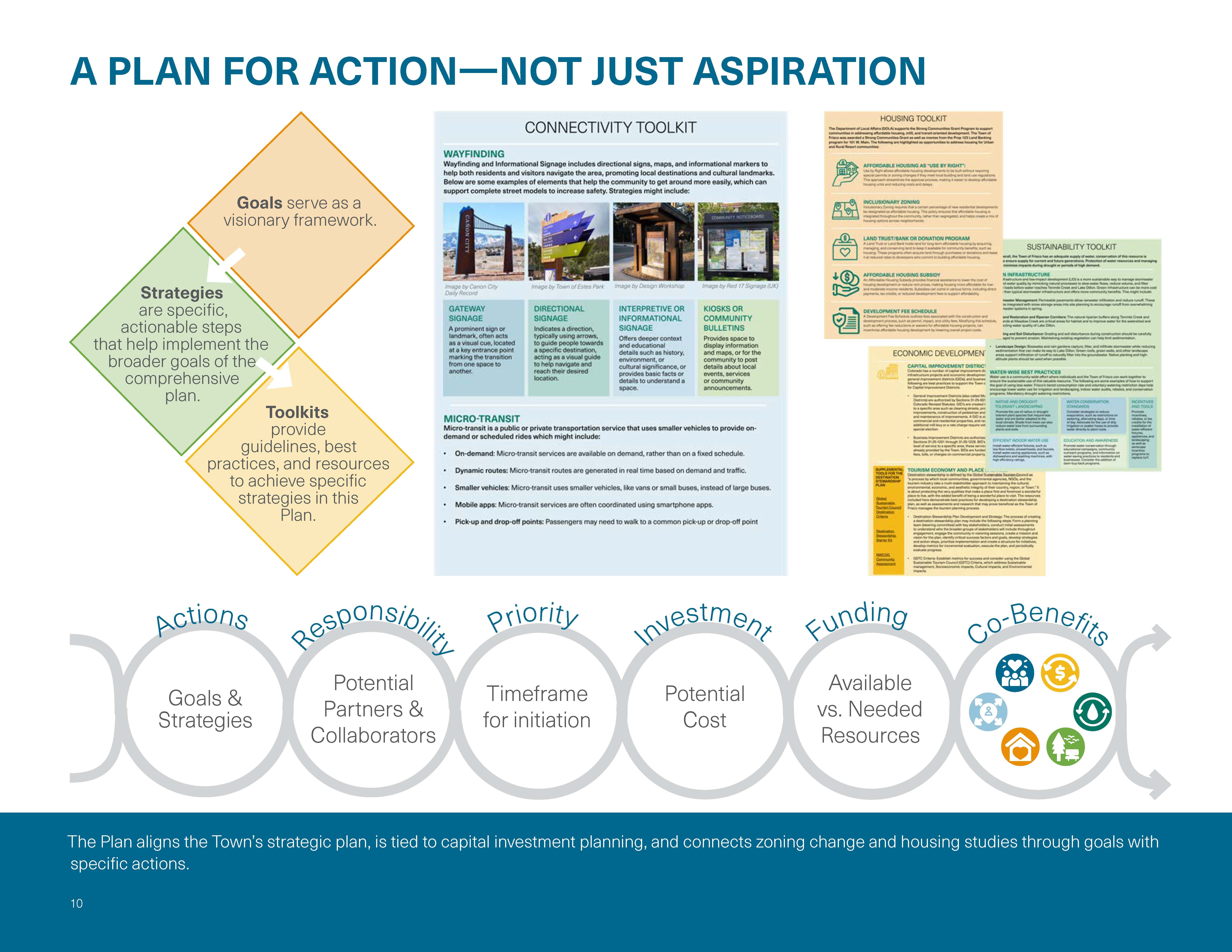 Housing affordability emerged as a top concern. Rising costs and limited options threaten the ability of local workers, young families, and seniors to remain in town. The plan calls for diversifying housing, incentivizing workforce options, and building creative partnerships to expand attainable housing. These strategies aim to maintain inclusivity and prevent displacement of long-time residents.